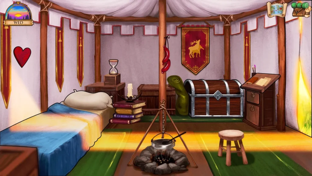 The gameplay mechanics in What a Legend! are a robust mix of point-and-click adventure, resource management, and visual novel-style decision making. 🎮 Your primary method of interaction is clicking on characters and objects in the beautifully rendered environments to talk, investigate, or use items in your inventory.